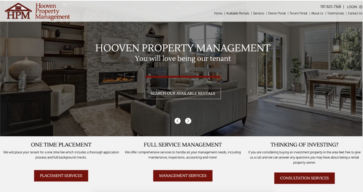 Hooven Property Management Launched on Thursday, July 25, 2019 By PMW Share Software: Buildium Application: Buildium Management Type: Residential Tags: Main Market: Arcata, CA Services Types: Website Url: https://www.hoovenproperty.com/ Build Type: SmartSite Template: The Henley